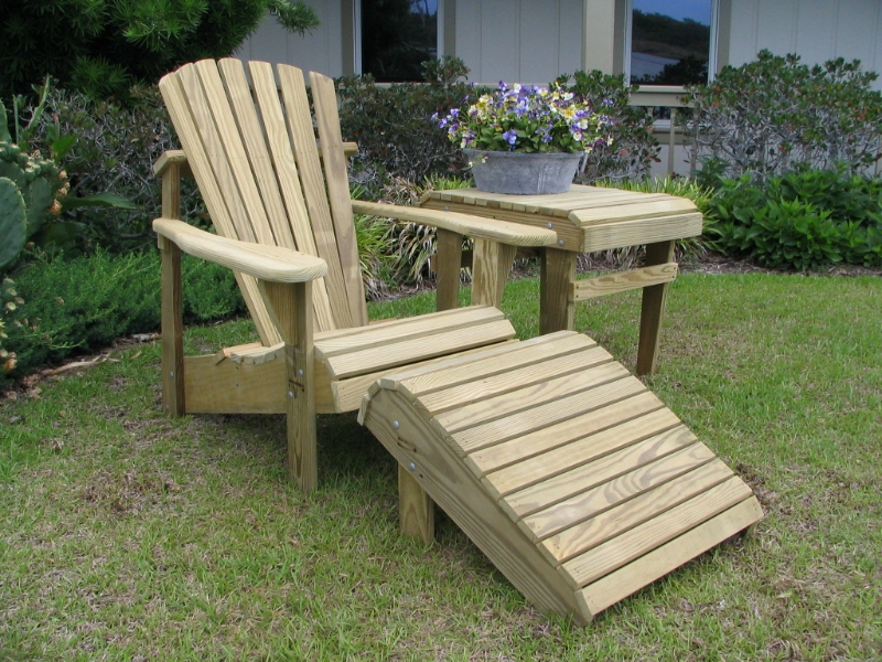 Classic Adirondack Chair (Unfinished Natural) with Footrest and Accent Side Table